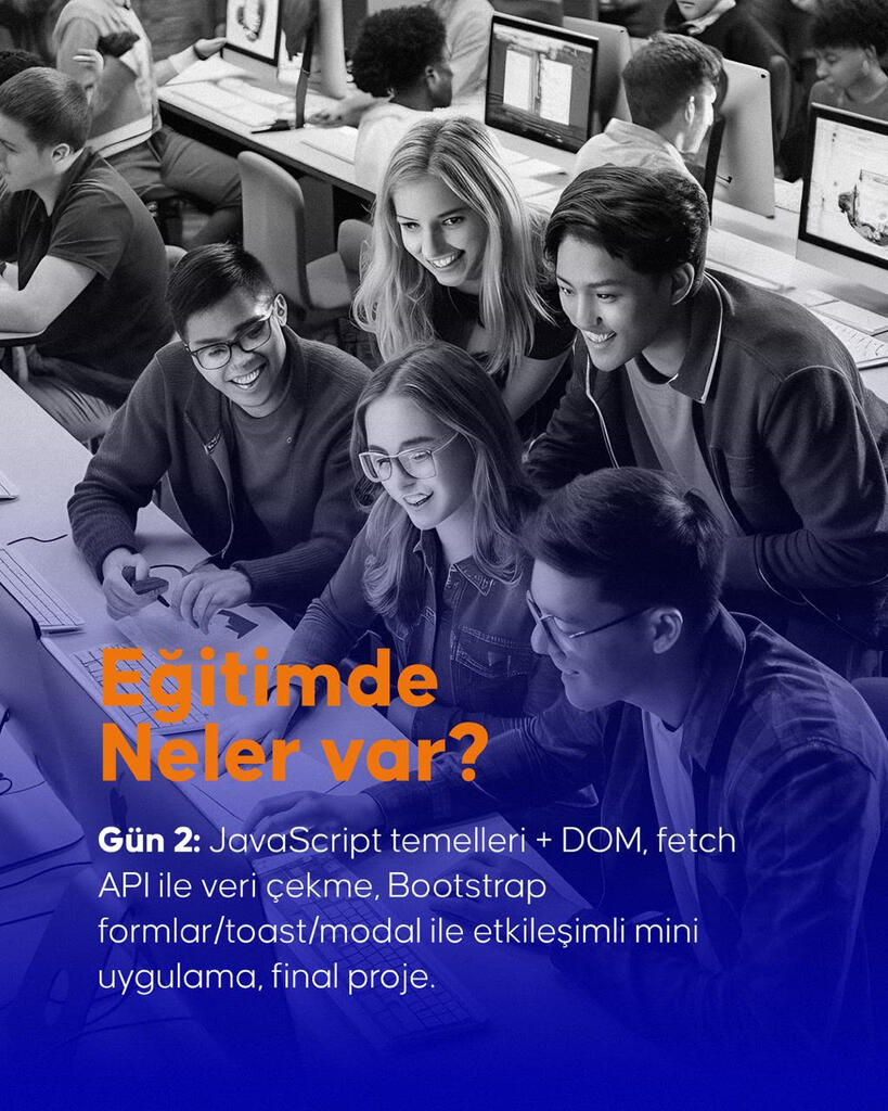 Katılımcıların responsive bir landing page ve API’den veri çeken küçük bir uygulamayı Bootstrap + JS ile uçtan uca inşa edebilmesi
